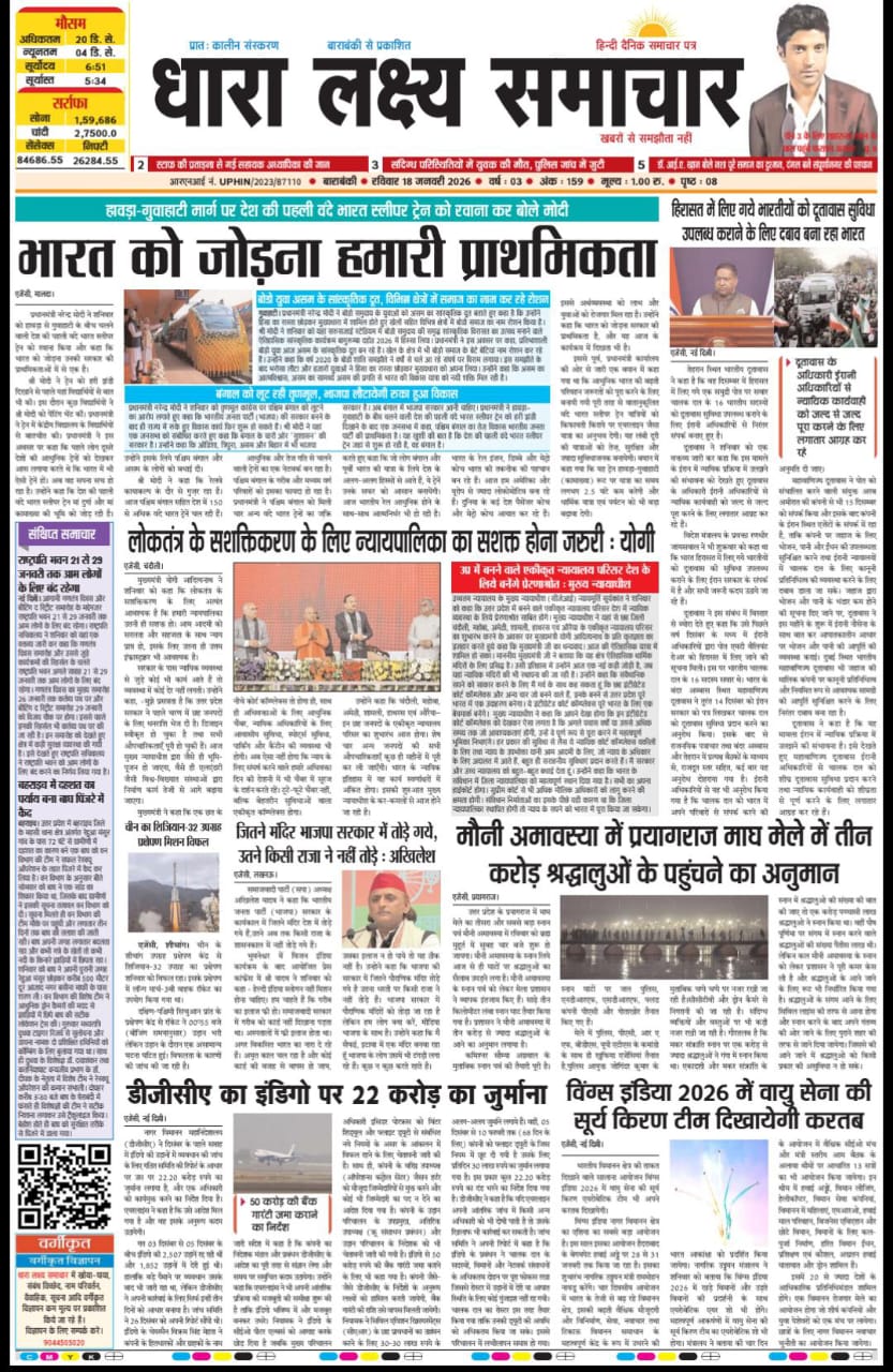 ई पेपर पढ़ें प्रातः कालीन संस्करण बाराबंकी से प्रकाशित हिंदी दैनिक धारा लक्ष्य समाचार पत्र 18 जनवरी 2026 January 19, 2026 News Desk Post Views: 12 dflip id=”18629″][/dflip