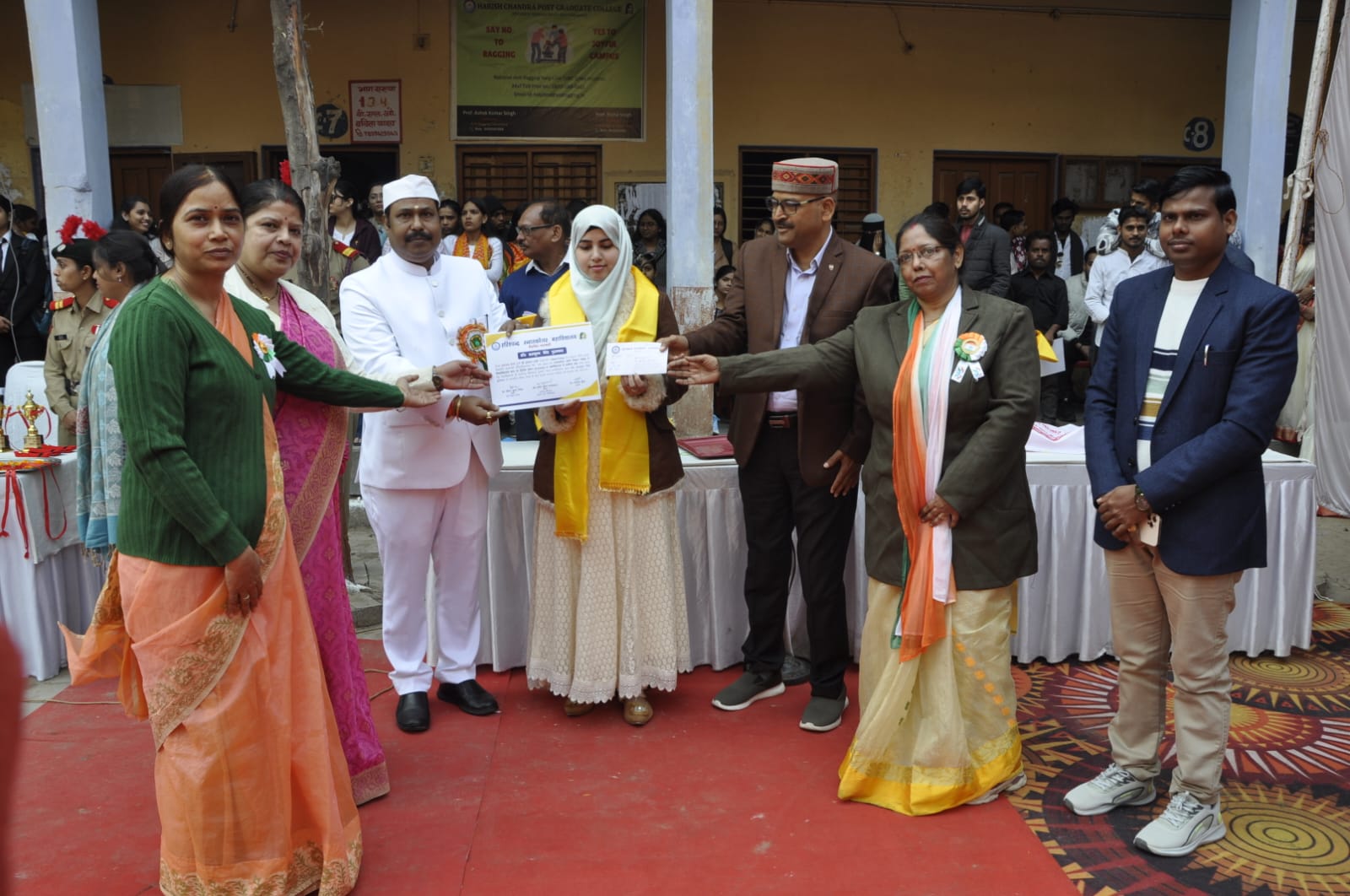 वाराणसी हरिशचंद्र स्नातकोत्तर महाविद्यालय गणतंत्र दिवस के अवसर पर कॉलेज के प्राचार्य प्रोफेसर रजनीश कुंवर जी ने विभागाध्यक्ष (प्राणी विज्ञान ) प्रोफेसर बी के निर्मल प्रोफेसर.संगीता शुक्ला असि प्रोफेसर प्रतिमा सिंह असि. प्रोफेसर.बाबू जी असिस्टेंट प्रोफेसर गीता रानी एवं समस्त महाविद्यालय परिवार की उपस्थिती मे गुलनाज बानो. ( छात्रा एमएससी प्राणी विज्ञान 2024-25) पुत्री श्री एहसान अली को डॉक्टर बृजभूषण सिंह पुरस्कार से सम्मानित किया। डॉ गीता रानी ( संरक्षिका डॉक्टर बृजभूषण सिंह पुरस्कार) ने बताया कि डॉक्टर बृजभूषण सिंह पुरस्कार प्रतिवर्ष हरिश्चंद्र महाविद्यालय एमएससी फाइनल ईयर ( प्राणी विज्ञान )मे प्रथम प्राप्त करने वाले छात्र/ छात्रा को पुरातन छात्र एसोसिएशन द्वारा प्रदान किया जाता है। पुरस्कार स्वरूप प्रशस्ति पत्र और पाॅच हजार पाच सो रू की राशी दी जाती है.इस वर्ष गुलनाज बानो ने कालेज मे प्रथम स्थान के साथ यूनिवर्सिटी में भी सिल्वर मेडल (रैंक-2 ) प्राप्त किया है। प्राणी विज्ञान विभाग एव कॉलेज के समस्त परिवार ने गुलनाज बानो को उनके उज्ज्वल भविष्य के लिए हार्दिक शुभकामनाएं और बधाइयां दी.