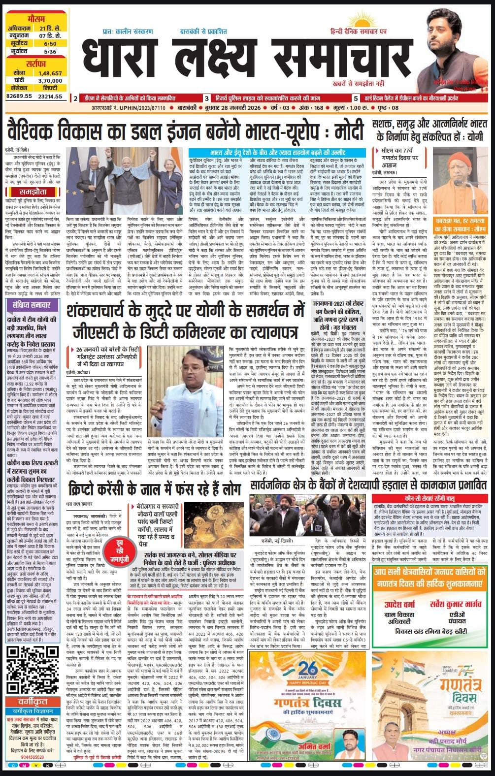 ई पेपर पढ़ें प्रातः कालीन संस्करण बाराबंकी से प्रकाशित हिन्दी दैनिक धारा लक्ष्य समाचार पत्र 28 जनवरी 2026 January 28, 2026 News Desk Post Views: 28