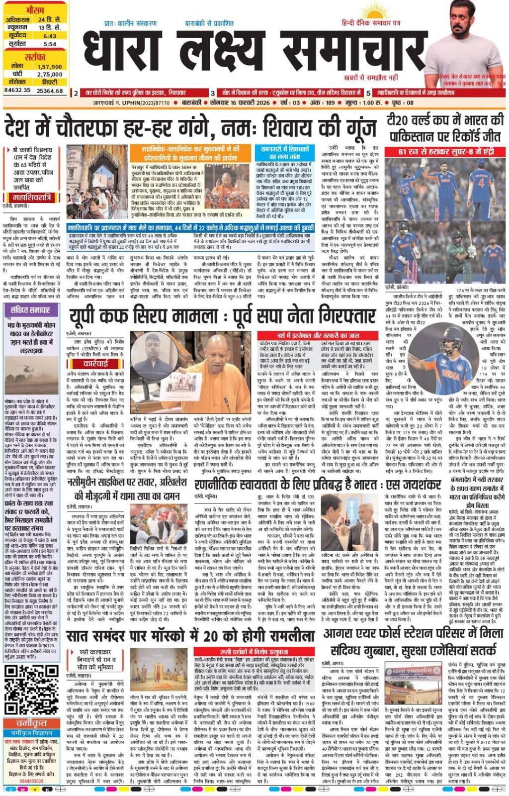 ई पेपर पढ़ें प्रातः कालीन संस्करण बाराबंकी से प्रकाशित हिंदी दैनिक धारा लक्ष्य समाचार पत्र 16 फरवरी 2026 February 16, 2026 News Desk Post Views: 14