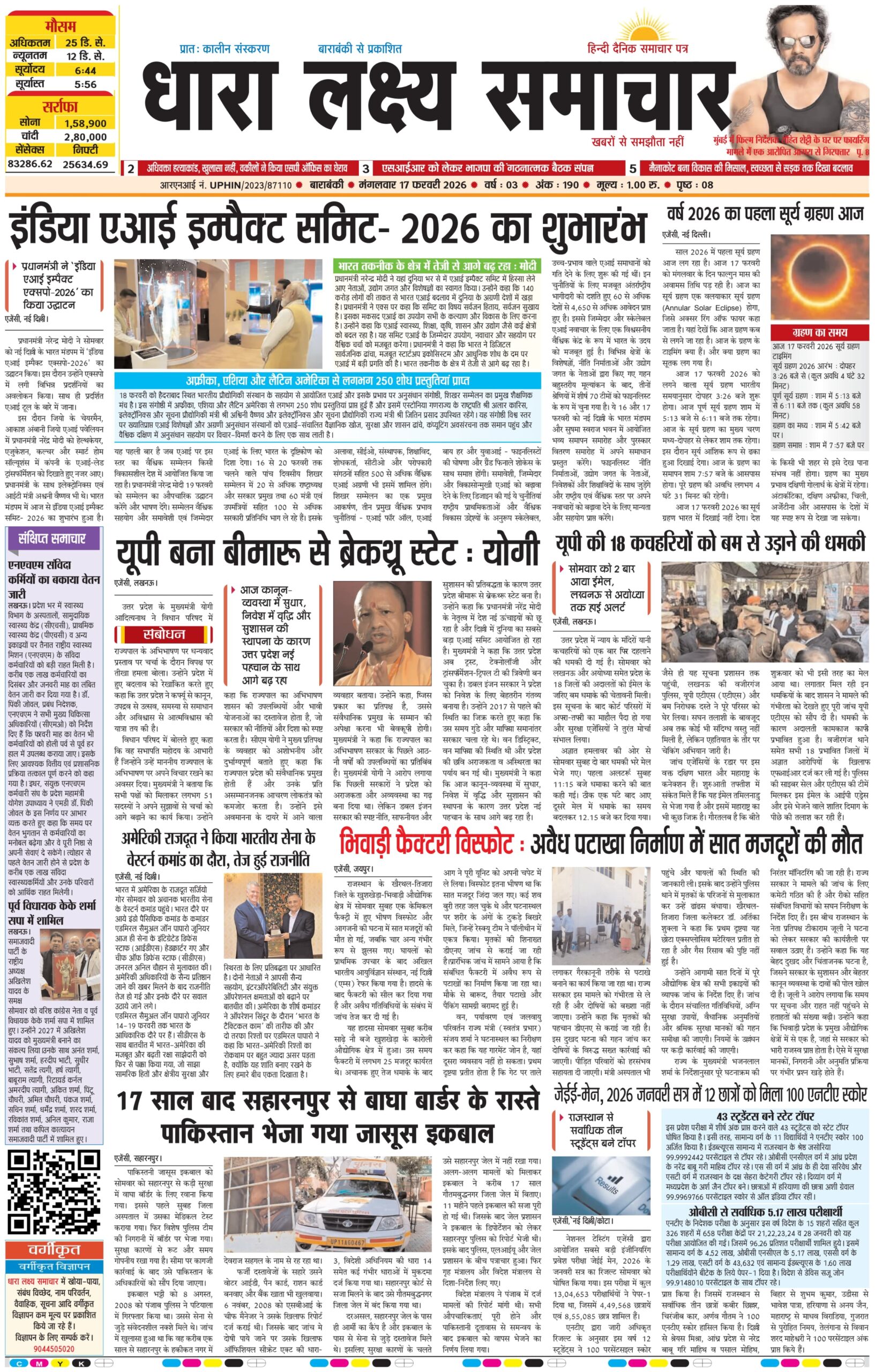 ई पेपर पढ़ें प्रातः कालीन संस्करण बाराबंकी से प्रकाशित हिंदी दैनिक धारा लक्ष्य समाचार पत्र 17 फरवरी 2026 February 17, 2026 News Desk Post Views: 15