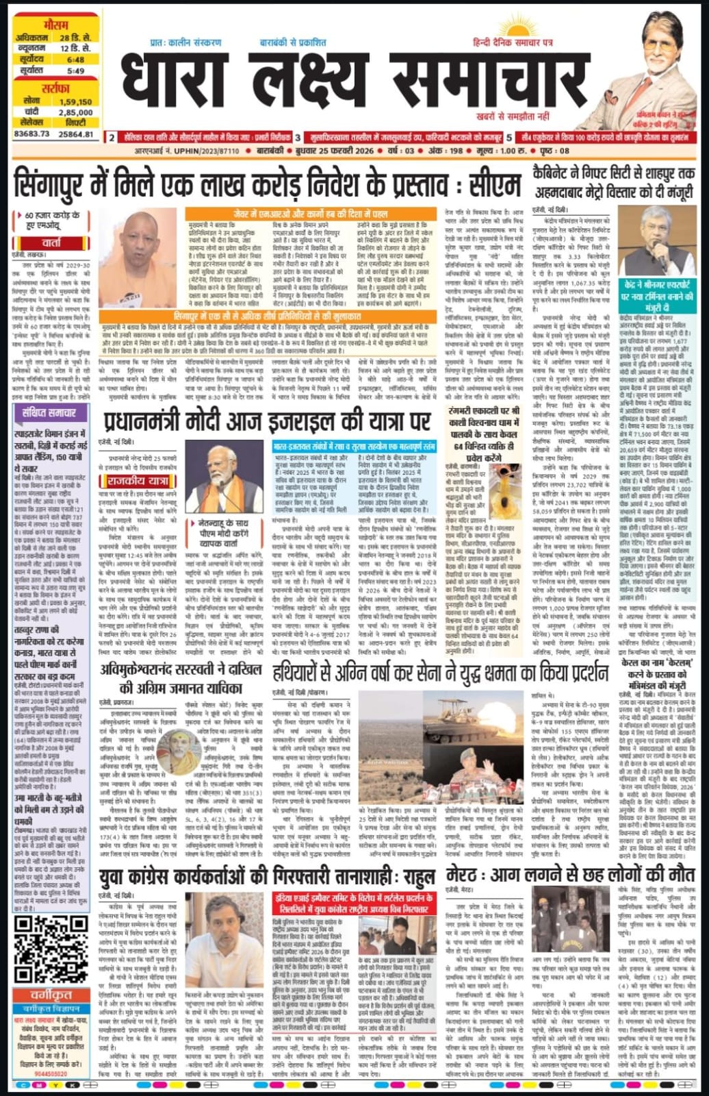 ई पेपर पढ़ें प्रातः कालीन संस्करण बाराबंकी से प्रकाशित हिंदी दैनिक धारा लक्ष्य समाचार 25 फरवरी 2026 February 25, 2026 News Desk Post Views: 20