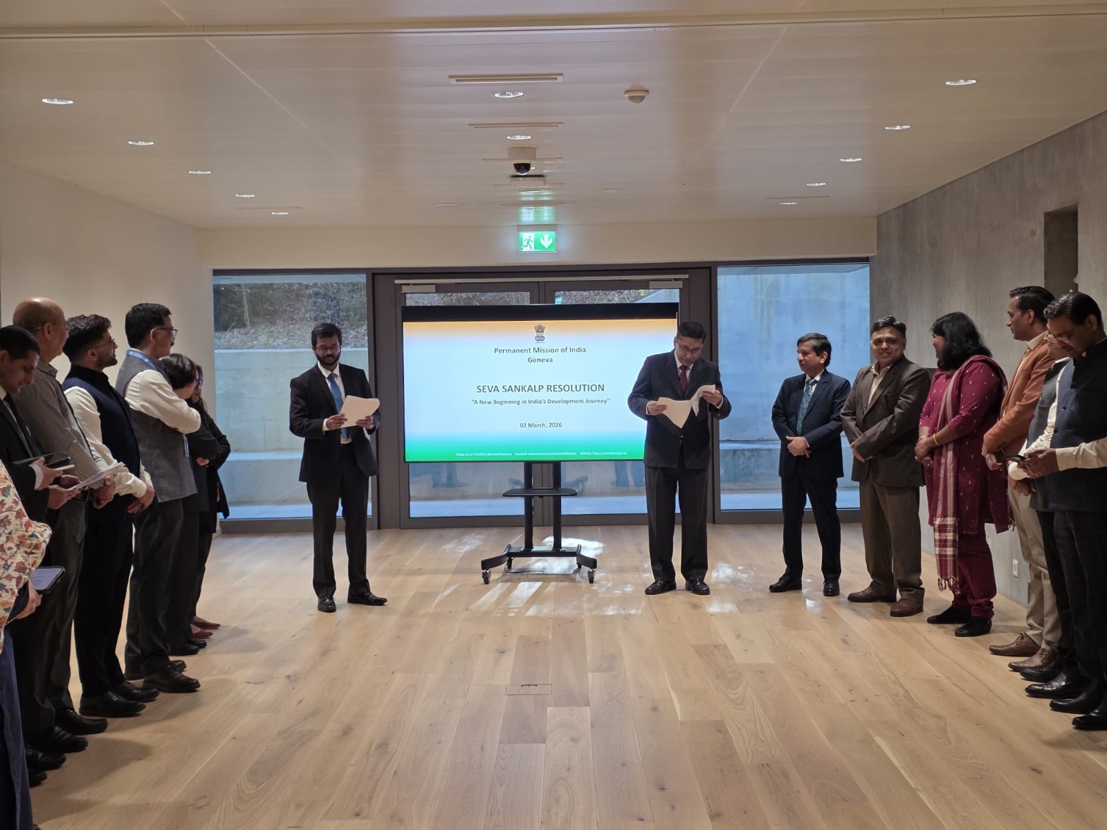 जिनेवा स्थित संयुक्त राष्ट्र में भारत के स्थायी मिशन ने सोशल मीडिया मंच ‘एक्स’ पर लिखा स्थायी प्रतिनिधि (पीआर) अरिंदम बागची ने जिनेवा में भारत के परमानेंट मिशन के अधिकारियों के साथ सेवा तीर्थ में यूनियन कैबिनेट की पहली मीटिंग में अपनाए गए सेवा संकल्प प्रस्ताव को लागू करने पर चर्चा की। अधिकारियों ने 2047 तक विकसित भारत के विजन को पूरा करने के लिए पूरी कोशिश करने का अपना वादा भी दोहराया।