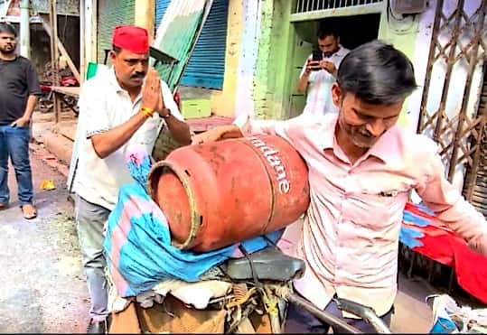 At his residence in Lohatia, when a scrap dealer was passing by calling out for scrap items, Sharma came out carrying a cooking gas cylinder and placed it in the scrap dealer’s bag as a symbolic gesture of protest.
