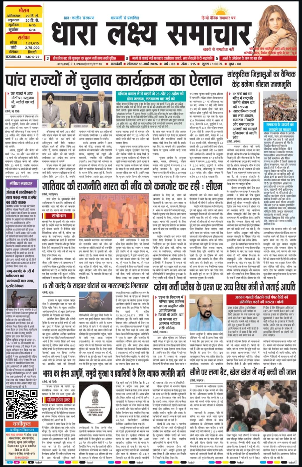ई पेपर पढ़ें प्रातः कालीन संस्करण बाराबंकी से प्रकाशित हिंदी दैनिक धारा लक्ष्य समाचार पत्र 16 मार्च 2026 March 16, 2026 News Desk Post Views: 11 ---------------------------------------------------------------------------------------------------