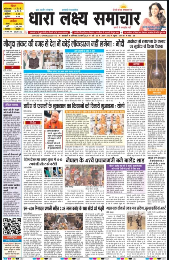 ई पेपर पढ़ें प्रातः कालीन संस्करण बाराबंकी से प्रकाशित हिंदी दैनिक धारा लक्ष्य समाचार पत्र 26 मार्च 2026 April 2, 2026 News Desk Post Views: 20