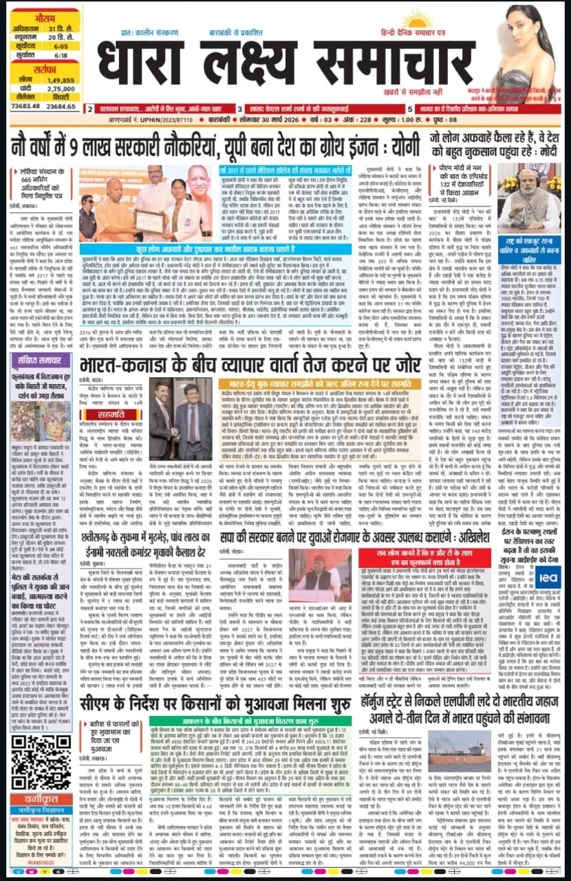 ई पेपर पढ़ें प्रातः कालीन संस्करण बाराबंकी से प्रकाशित हिंदी दैनिक धारा लक्ष्य समाचार पत्र 30 मार्च 2026 April 7, 2026 News Desk Post Views: 39