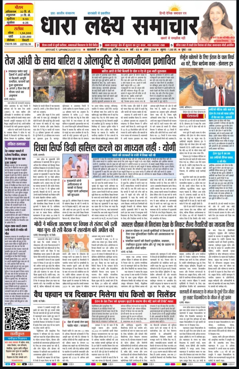 ई पेपर पढ़ें प्रातः कालीन संस्करण बाराबंकी से प्रकाशित हिंदी दैनिक धारा लक्ष्य समाचार पत्र 05 अप्रैल 2026 April 7, 2026 News Desk Post Views: 35 dflip id=”23011″][/dflip]