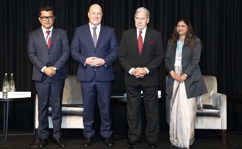 विदेश राज्य मंत्री ने सोशल मीडिया मंच ‘एक्स’ पर कार्यक्रम की तस्वीरें साझा करते हुए लिखा न्यूजीलैंड के पीएम क्रिस्टोफर लक्सन और डिप्टी पीएम तथा विदेश मंत्री विंस्टन पीटर्स के साथ ऑकलैंड में आईएनजेडबीसी समिट 2025 को संबोधित करने का सौभाग्य मिला।