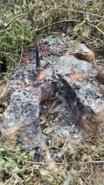 रातों रात पेड़ काट कर ठूठों को जला दिया