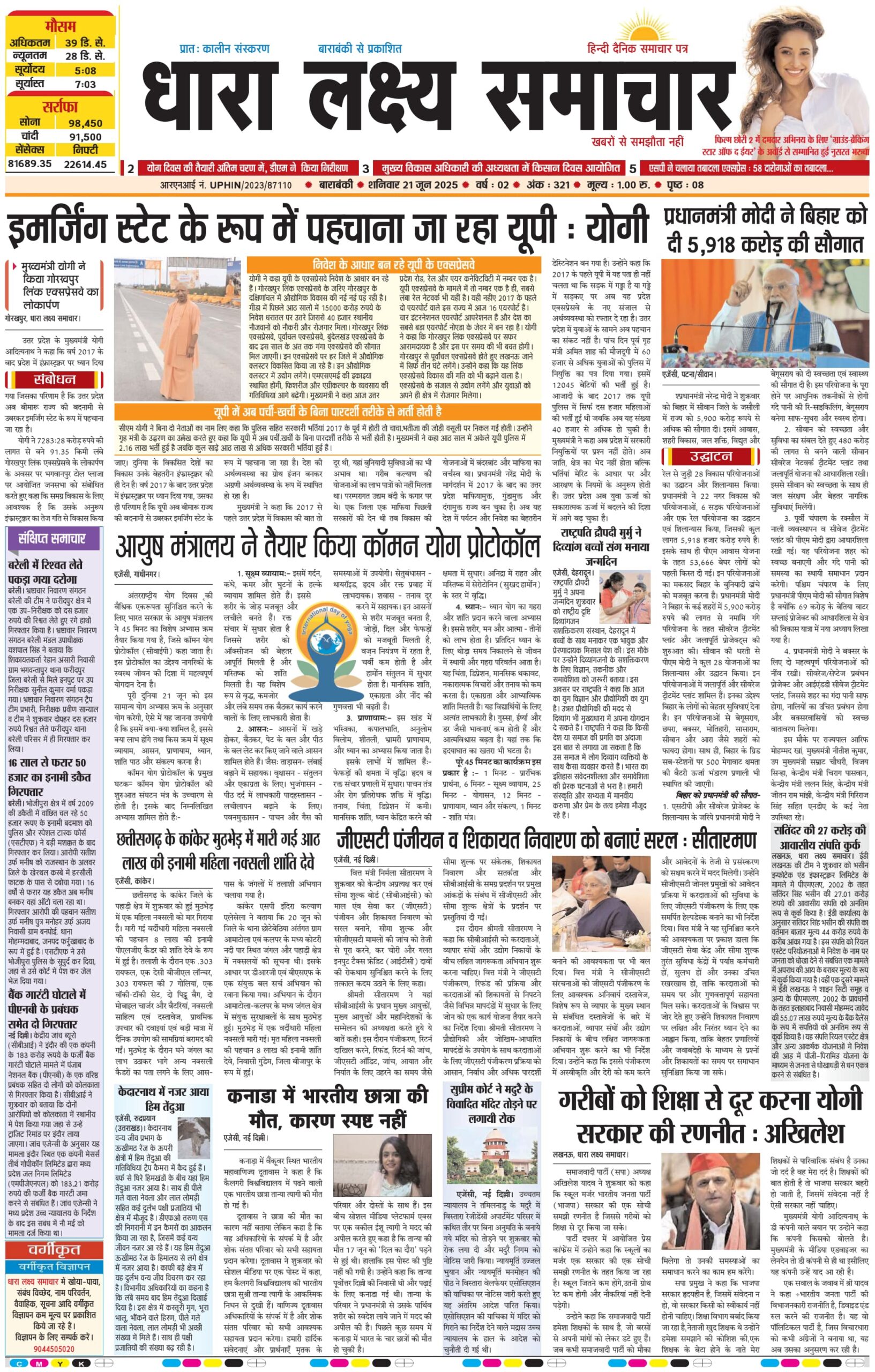 ई पेपर पढ़ें प्रातः कालीन संस्करण बाराबंकी से प्रकाशित हिन्दी दैनिक धारा लक्ष्य समाचार पत्र 21 जून 2025 June 21, 2025 News Desk Post Views: 103
