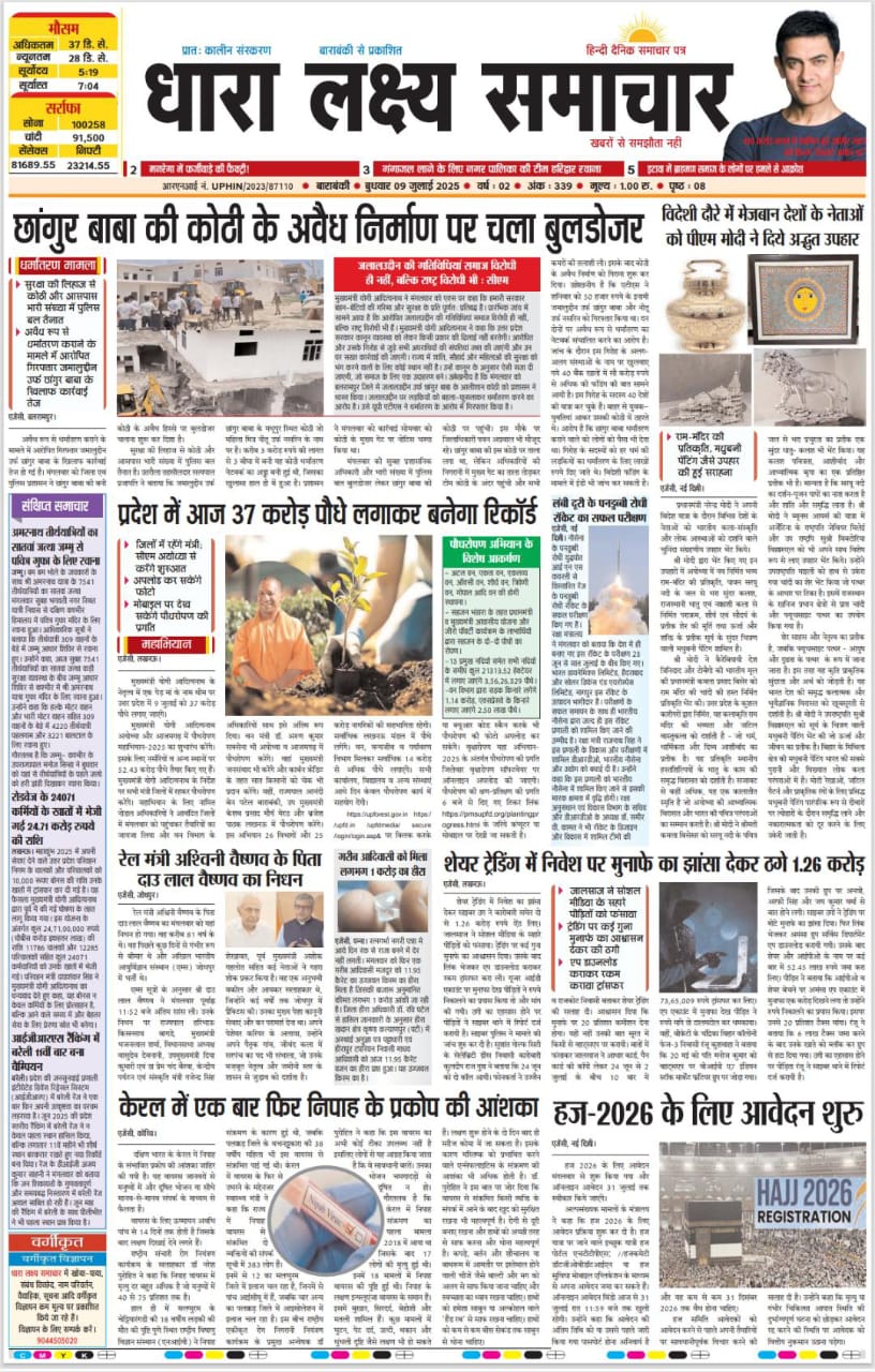 ई पेपर पढ़ें प्रातः कालीन संस्करण बाराबंकी से प्रकाशित हिन्दी दैनिक धारा लक्ष्य समाचार पत्र 09 जुलाई 2025 July 9, 2025 News Desk Post Views: 116