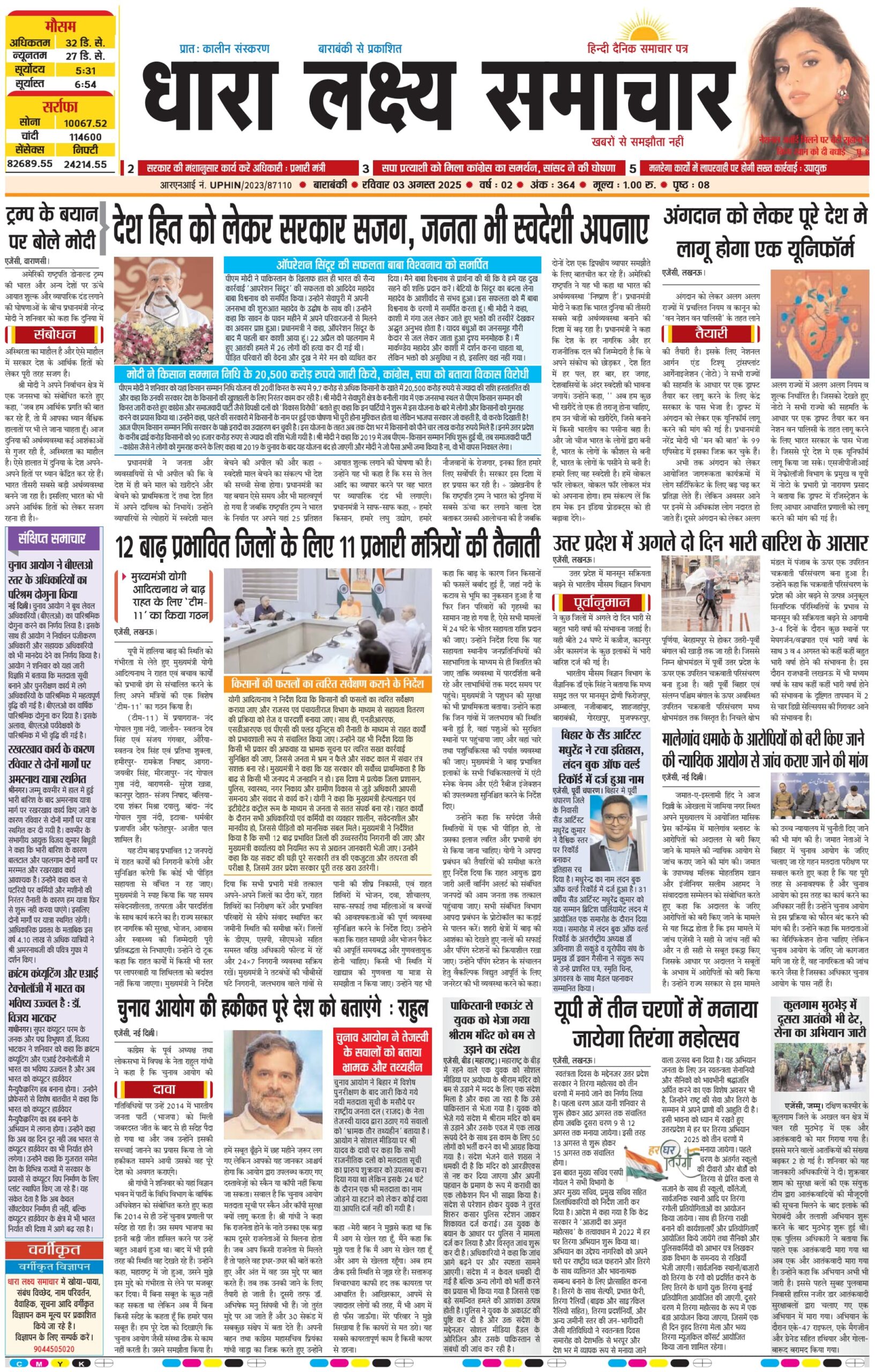 ई पेपर पढ़ें प्रातः कालीन संस्करण बाराबंकी से प्रकाशित हिन्दी दैनिक धारा लक्ष्य समाचार पत्र 3 अगस्त 2025 August 3, 2025 News Desk Post Views: 112