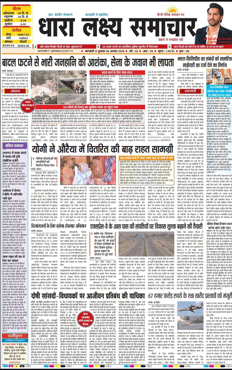 ई पेपर पढ़ें प्रातः कालीन संस्करण बाराबंकी से प्रकाशित हिन्दी दैनिक धारा लक्ष्य समाचार पत्र 6 अगस्त 2025 August 6, 2025 News Desk Post Views: 50