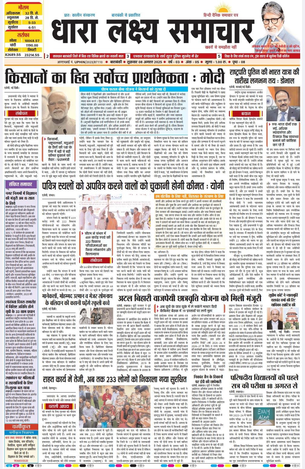 ई पेपर पढ़ें प्रातः कालीन संस्करण बाराबंकी से प्रकाशित हिन्दी दैनिक धारा लक्ष्य समाचार पत्र 08 अगस्त 2025 August 8, 2025 News Desk Post Views: 101 dflip id=”9814″][/dflip]